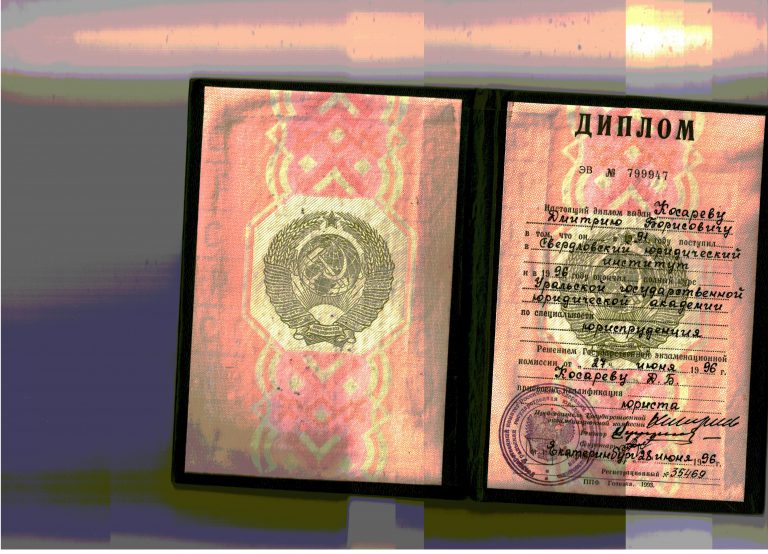 высшее юридическое образование по специальности юриспруденция; диплом ВСГ 1331518, регистрационный номер 9236, выданный 22.07.2010 г. Уральский Финансово-Юридический Институт;