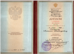 высшее строительно-техническое образование по специальности “Промышленное и гражданское строительство”; диплом АВС 0026953, регистрационный номер 147491, выданный 15.06.1998 г. УГТУ-УПИ;